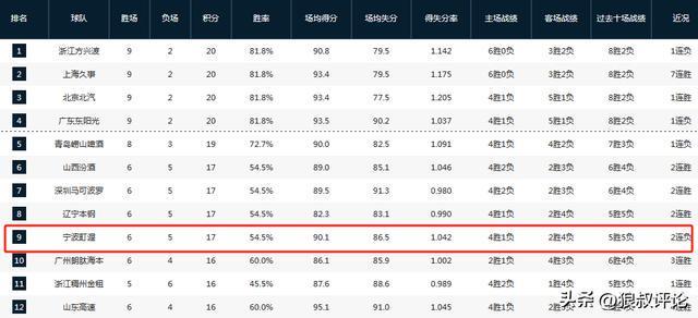 总战绩为6胜5负,排在积分榜第9的位置,其中,主场战绩为4胜1负,也就是不敌北京这场。
