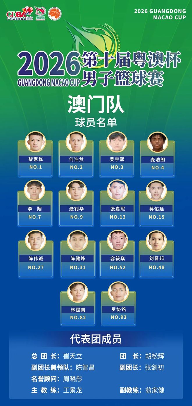 澳门队则以十五运男子成年组阵容为基础组建, 王景龙指导 担任主教练。除了 黎家栋、林霆朗等老队员 在列,李翔、吴宇熙等新生代加入其中。